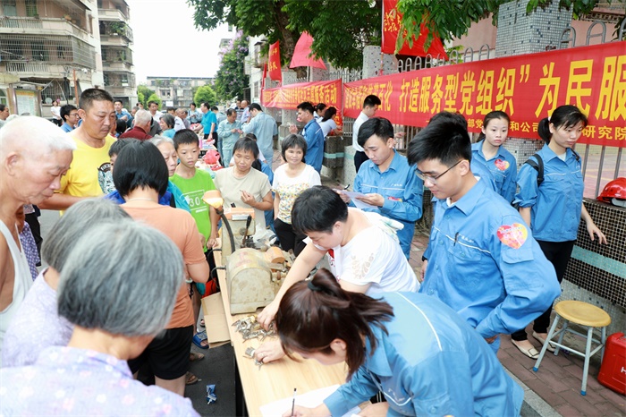 当天上午,公司与热电分部、研究院、建行茂名分行、矿区服务站共59名志愿者参加活动。活动分为现场设点服务和上门服务两大类,现场设点服务共有家电维修、爱心理发、义务配钥匙、义务修伞、育民宣传等6个项目,上门服务共有电设施改装、安装助力架、水设施维修、探访慰问等4个项目。志愿者们分别深入到“结对”困难党员家庭进行慰问,为他们送上了慰问品和慰问金,让他们在“七一”到来之前感受到来自党组织的浓浓关爱。