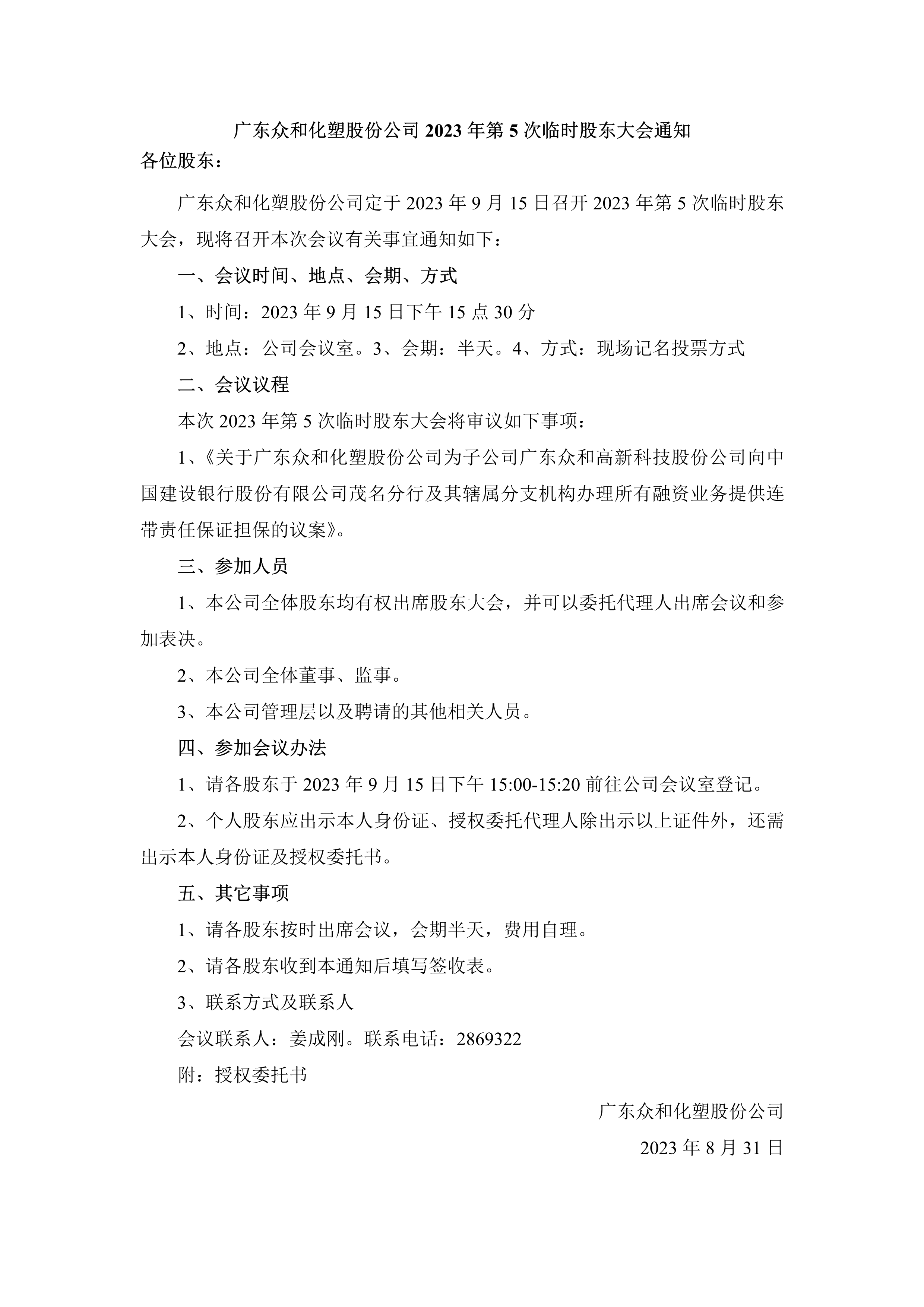 bevictor伟德官网2023年第5次临时股东大会通知