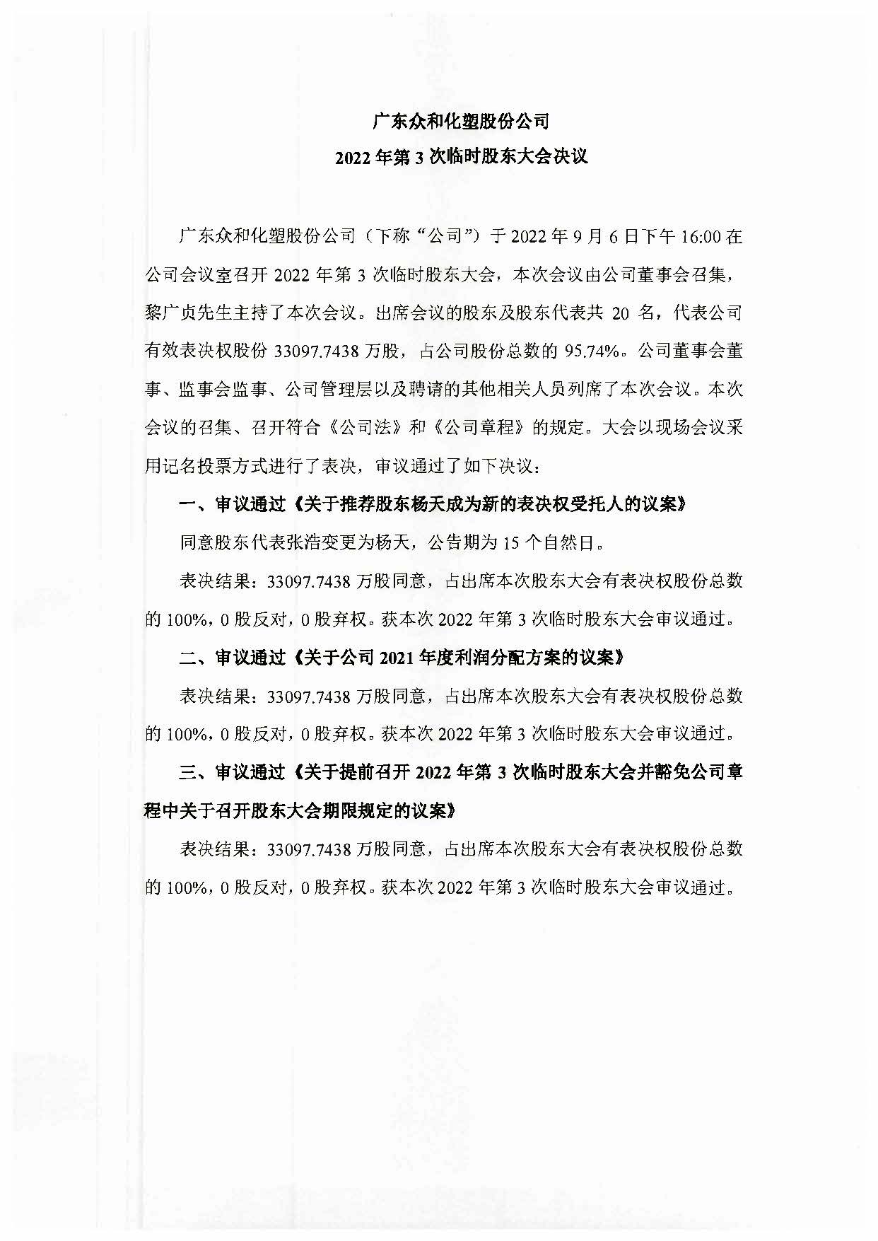 bevictor伟德官网 2022年第3次临时股东大会决议