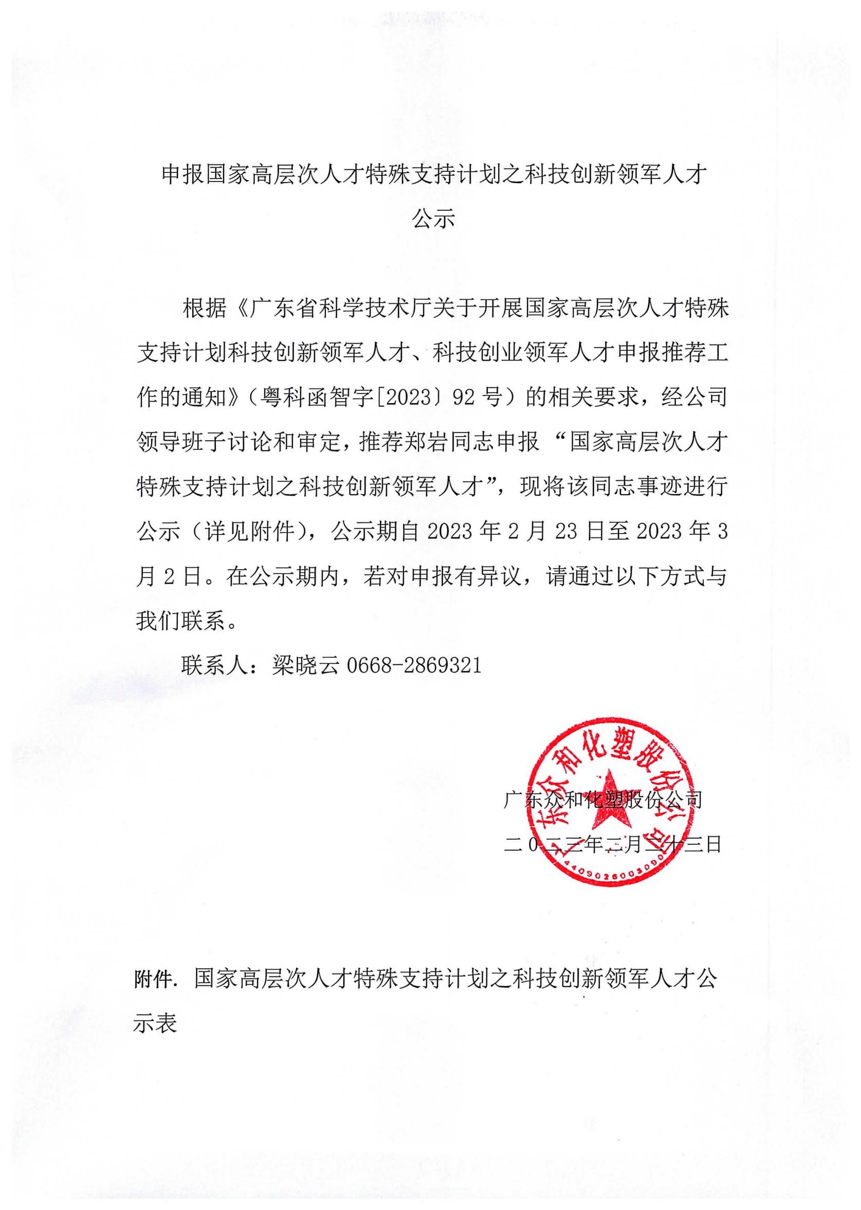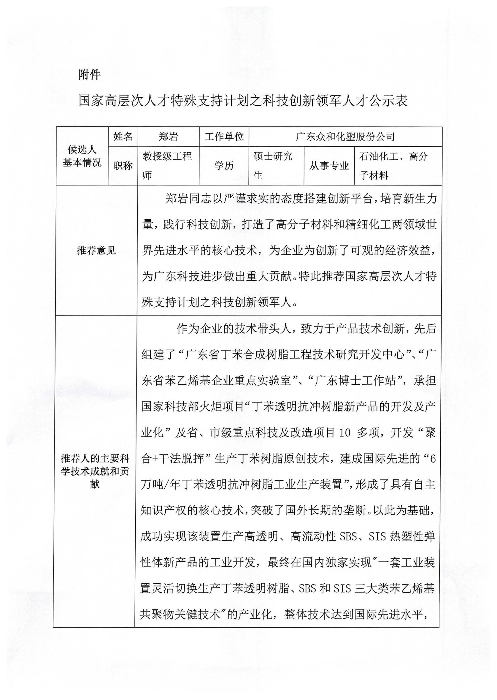 申报国家高层次人才特殊支持计划之科技创新领军人才公示