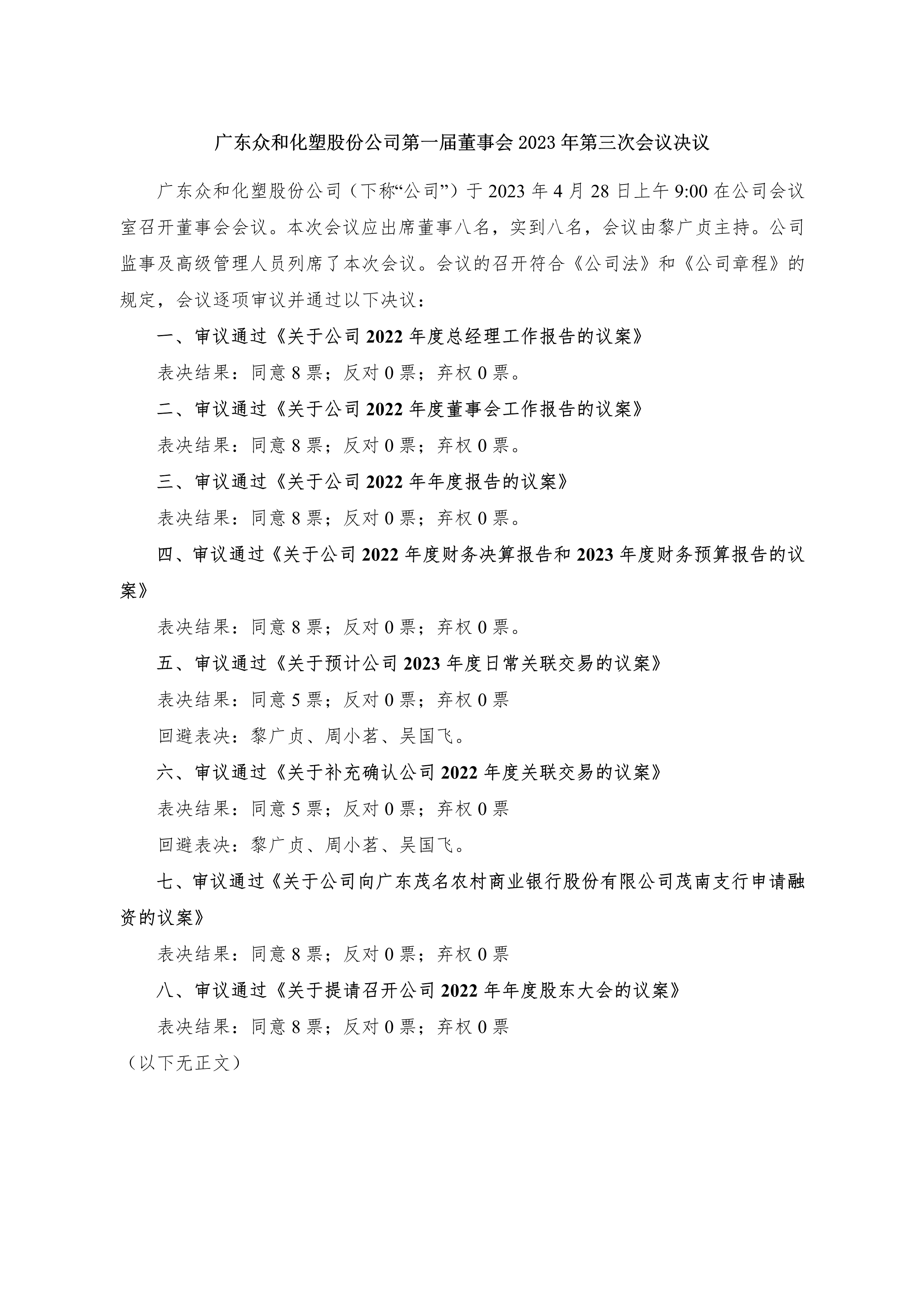 bevictor伟德官网第一届董事会2023年第三次会议决议