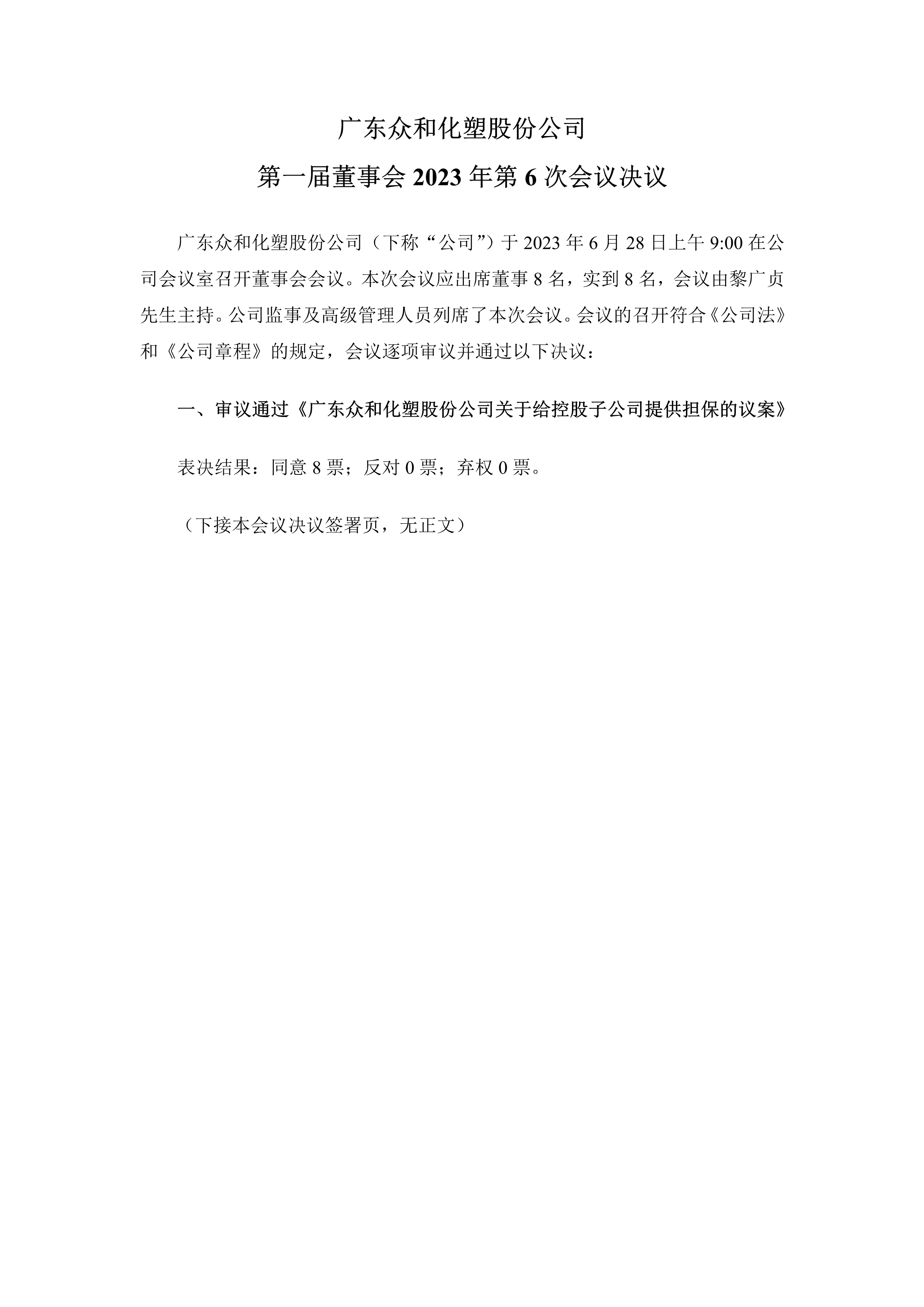 bevictor伟德官网 第一届董事会2023年第6次会议决议