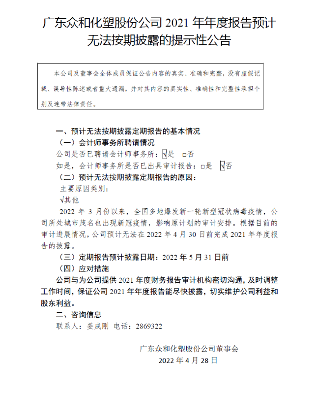 bevictor伟德官网2021年年度报告预计无法按期披露的提示性公告