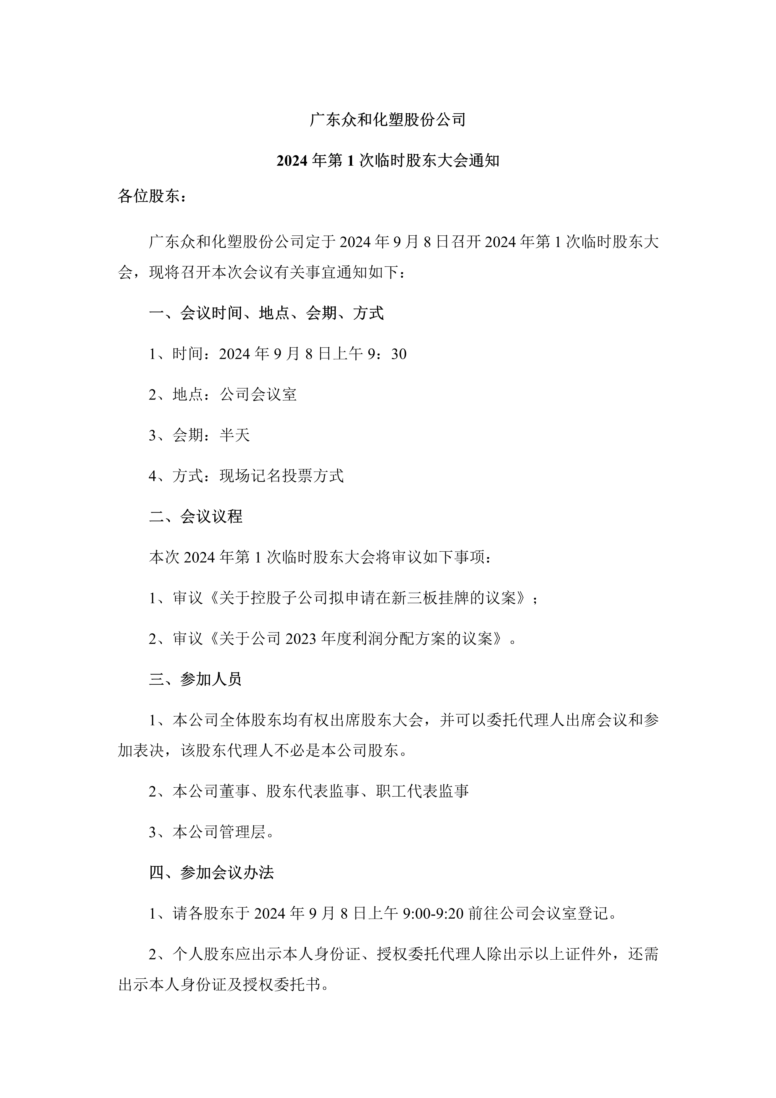 bevictor伟德官网 2024年第1次临时股东大会通知